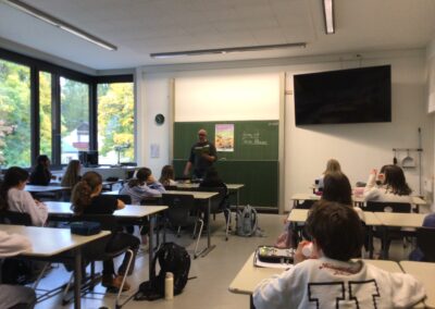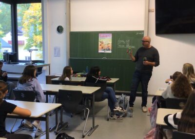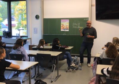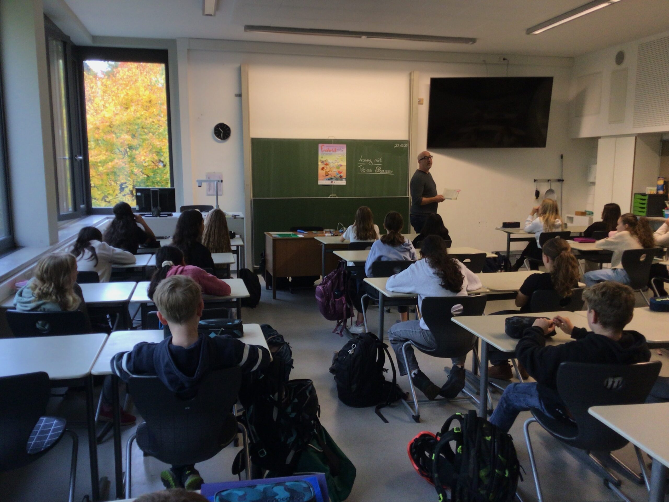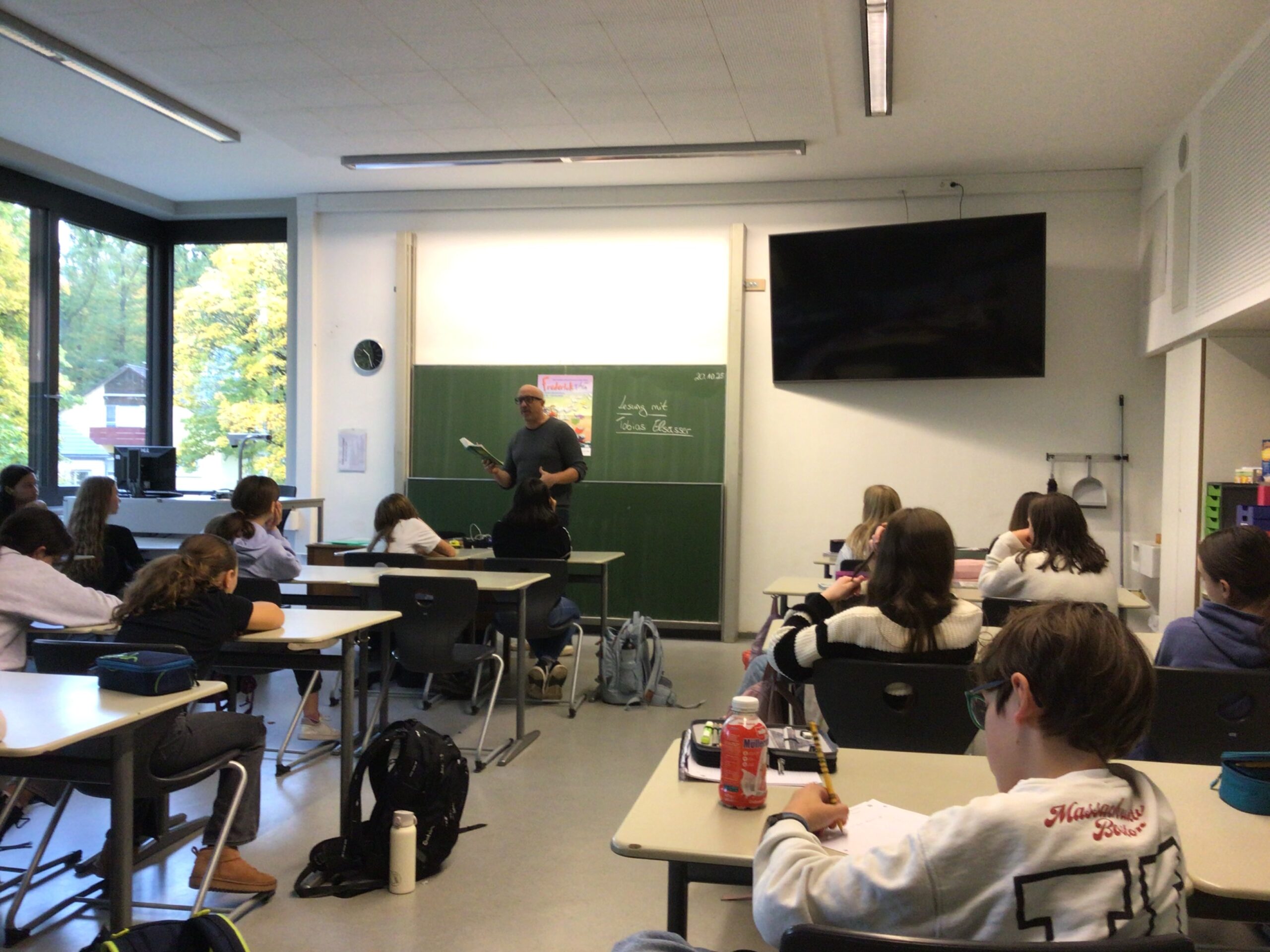 Er erzählte auf humorvolle und spannende Weise von Technik, Künstlicher Intelligenz (KI) und dem Zusammenleben von Mensch und Roboter. Dabei ging es auch um Fragen, wie viel Technik im Alltag gut ist und was diese mit uns macht. Wir hörten interessiert zu, stellten viele Fragen und erfuhren, wie aus Ideen Geschichten entstehen – ein Besuch, der uns zum Nachdenken gebracht hat.