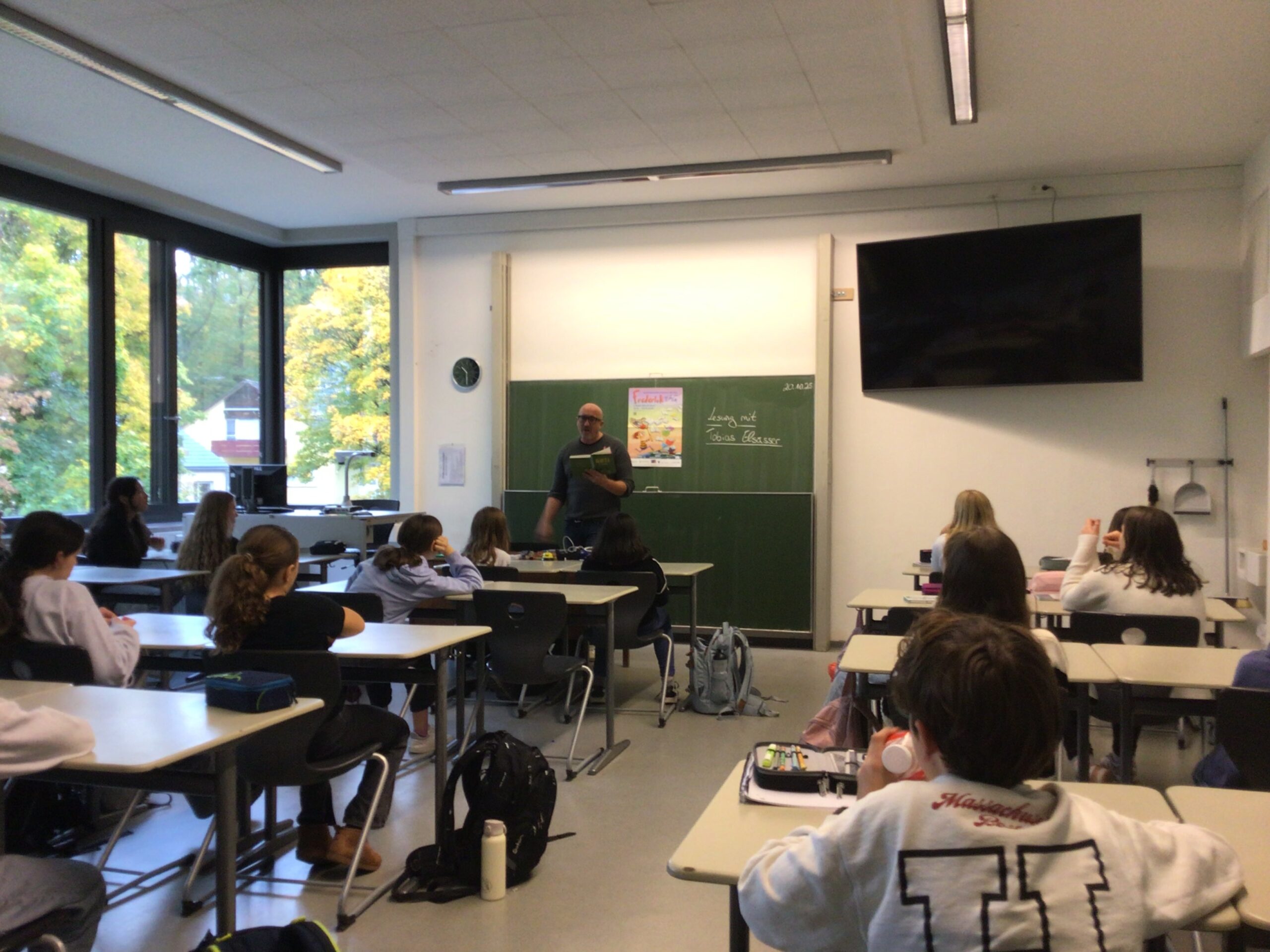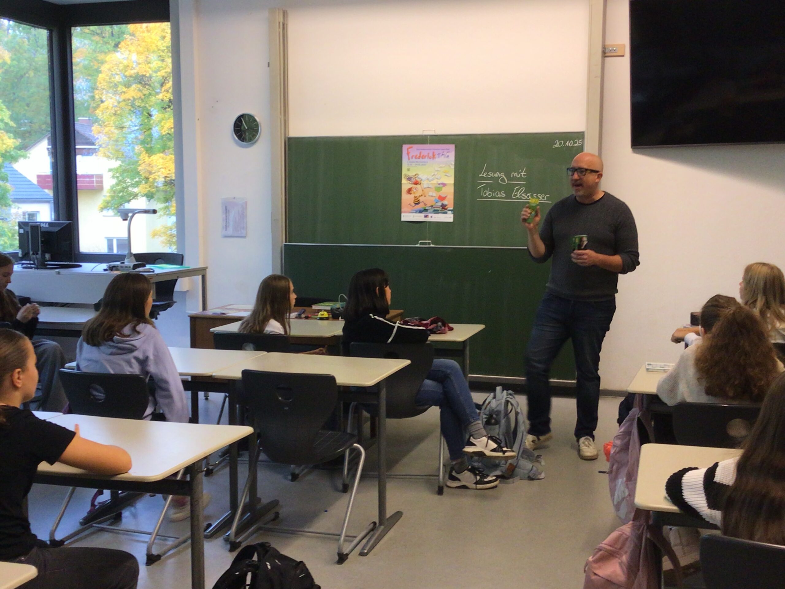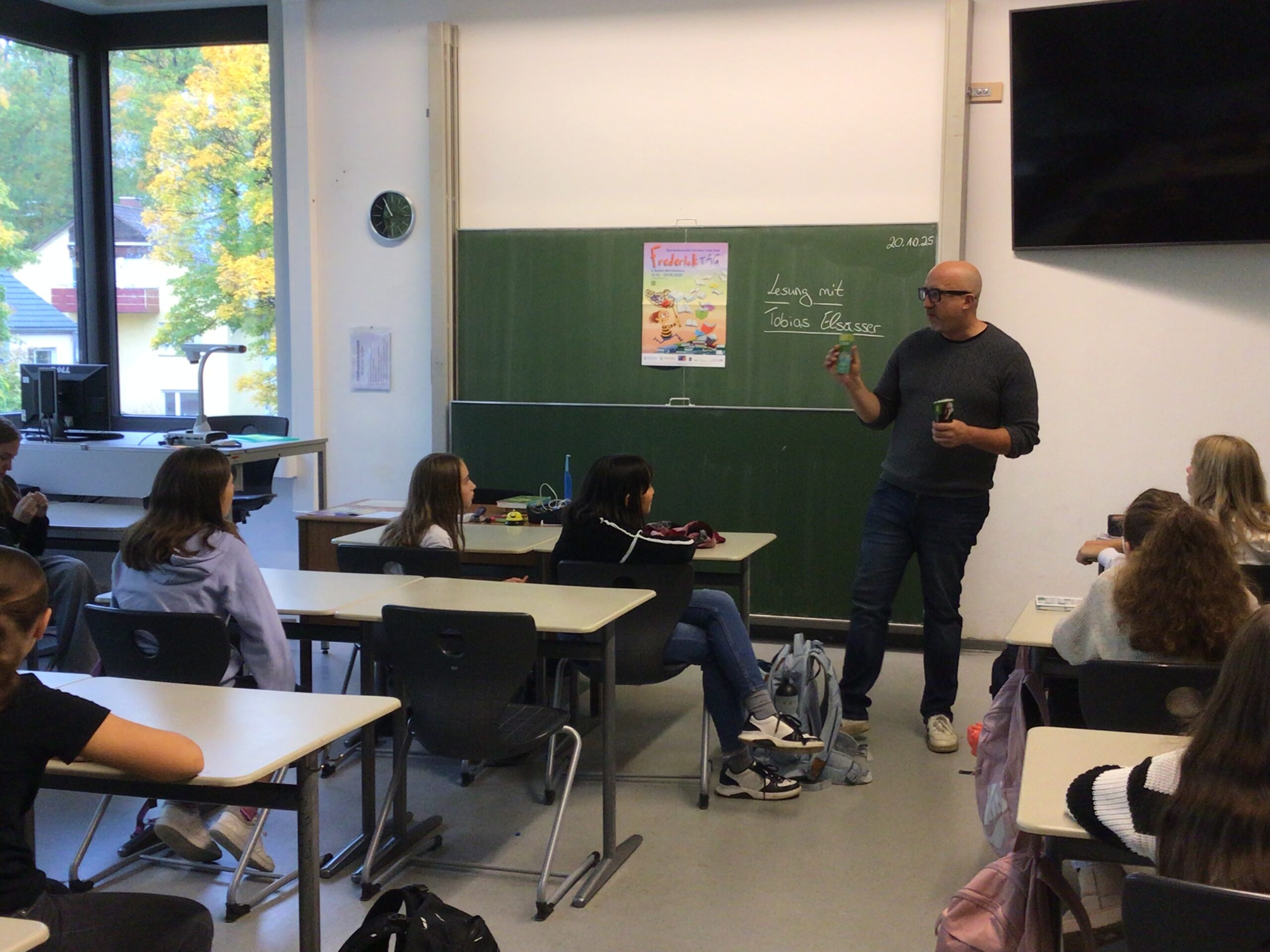 Jugendbuchautor Tobias Elsässer, aufgewachsen und zur Schule gegangen in Echterdingen, war am Montag, 20.10.2025 zu Gast bei uns an der IKR und las aus seinem Buch „Arti – Auf Freundschaft programmiert“.
