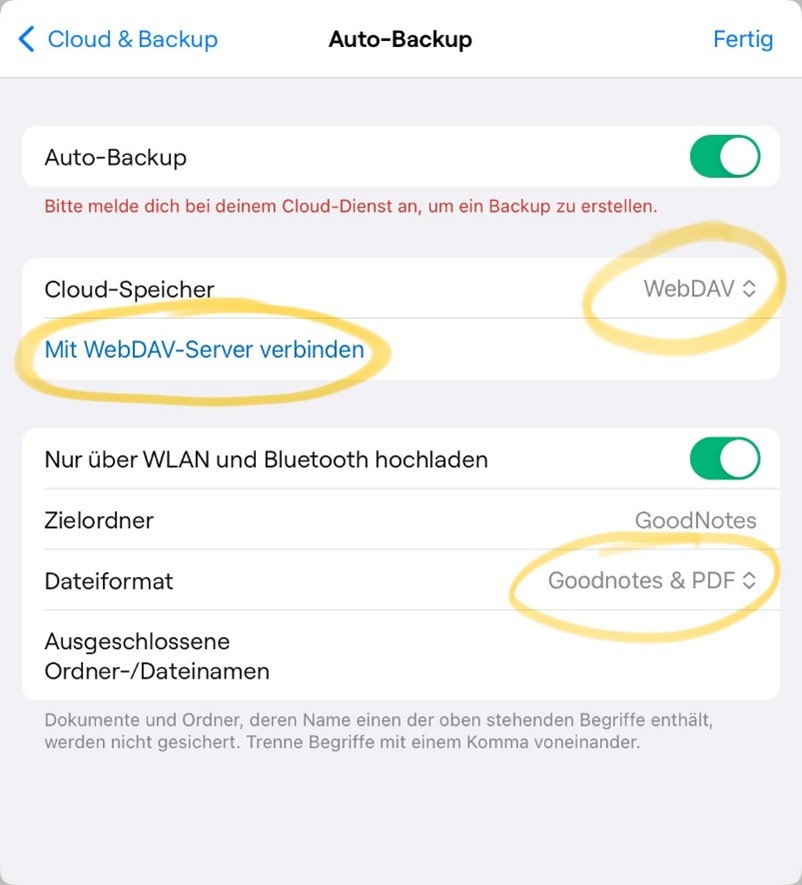 Automatische Backup-Funktion von GoodNotes auf IServ einrichten (via WebDAV)
