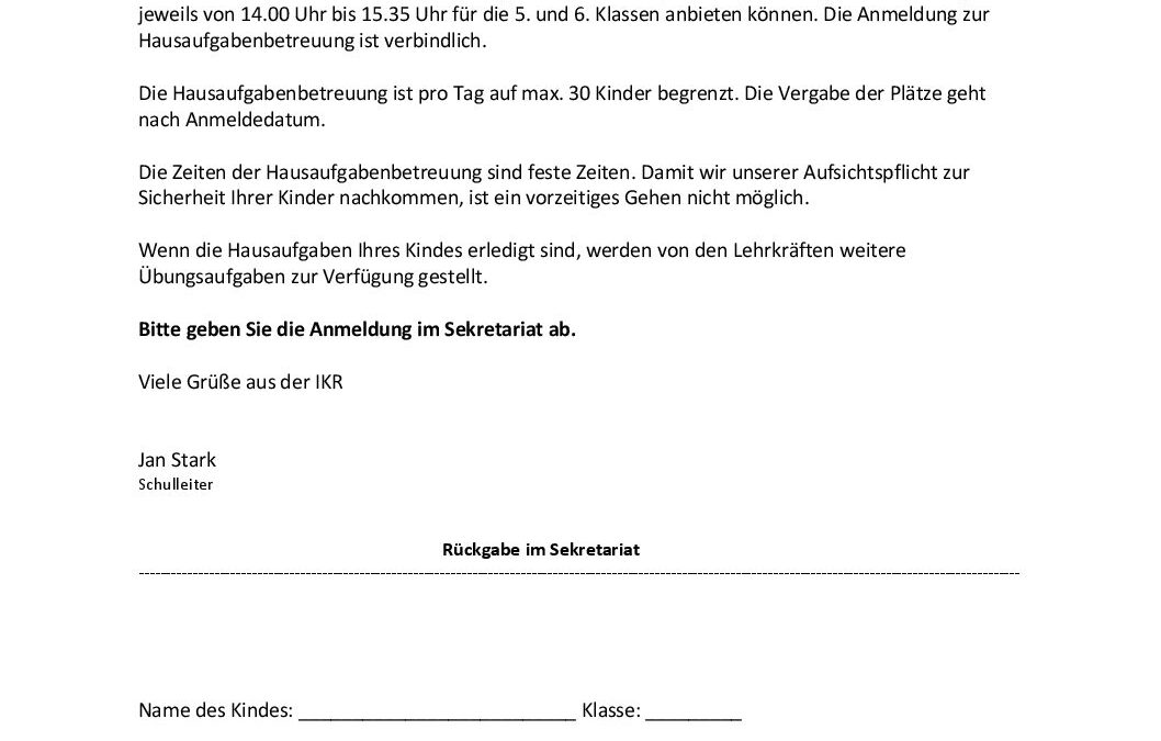 Anmeldung für das Schuljahr 2026/2027
